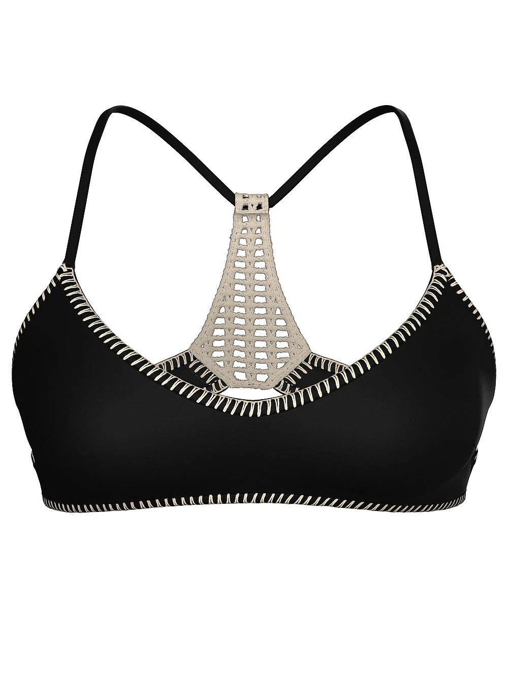 Opposites attract. Smooth and sporty neoprene meets its match with boho-chic crochetwork and blanket-stitching details for a modern-vintage spin on swim. You’ll be a surfside standout in this halter-style Bralette Top.