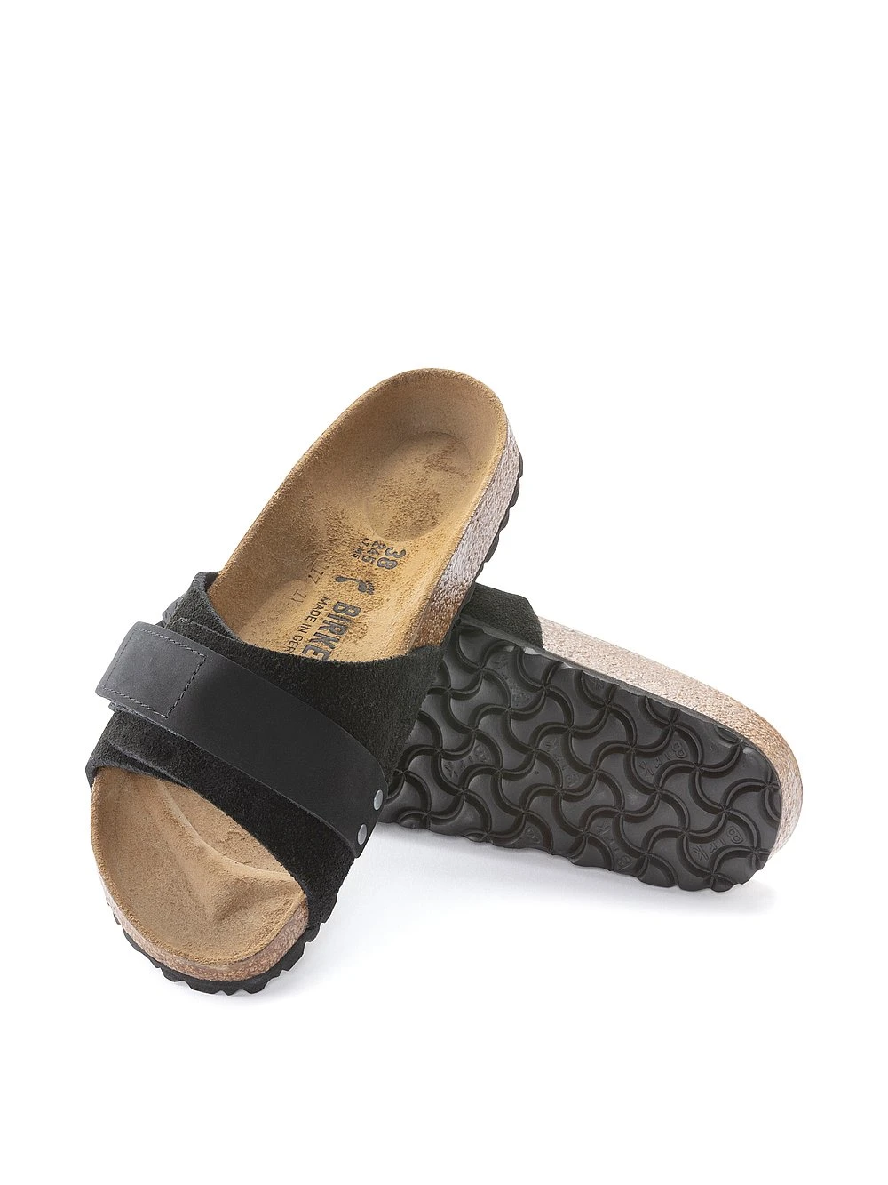 The new Oita slide maximizes your comfort with its minimalist-friendly design. A double hook-and-loop closure lets you customize the fit from the inside out. Its suede upper comes together softly over the foot, secured by a nubuck leather strap. The style is grounded in signature BIRKENSTOCK support, with a cork-latex footbed that shapes to you with wear. Slip on and go.