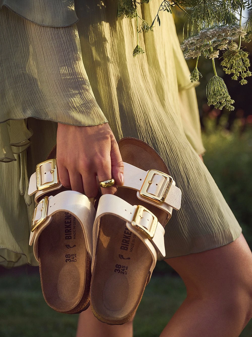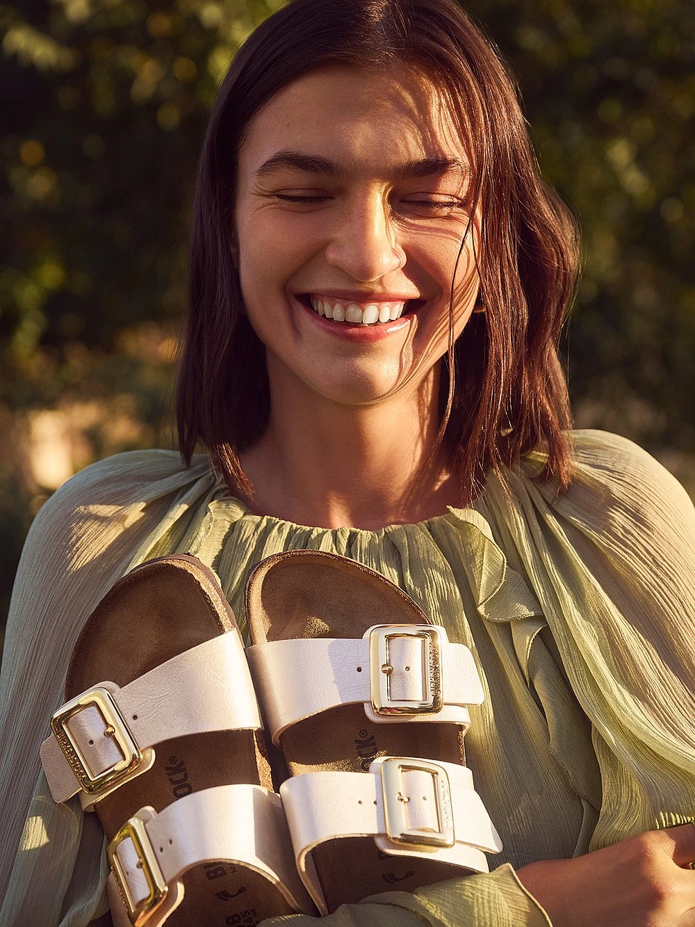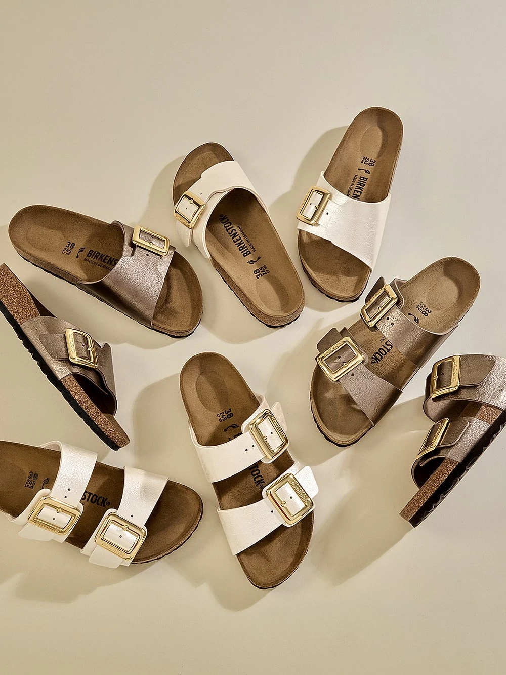 The BIRKENSTOCK Sydney proves that fashion and functionality can go hand in hand. With its two simple straps, it’s a real hit with women who want both high fashion and comfort. This sandal version has a silky sheen finish. The shiny, gently rounded padded buckles are especially eye-catching. The upper is made from the skin-friendly, hard-wearing synthetic material Birko-Flor®.