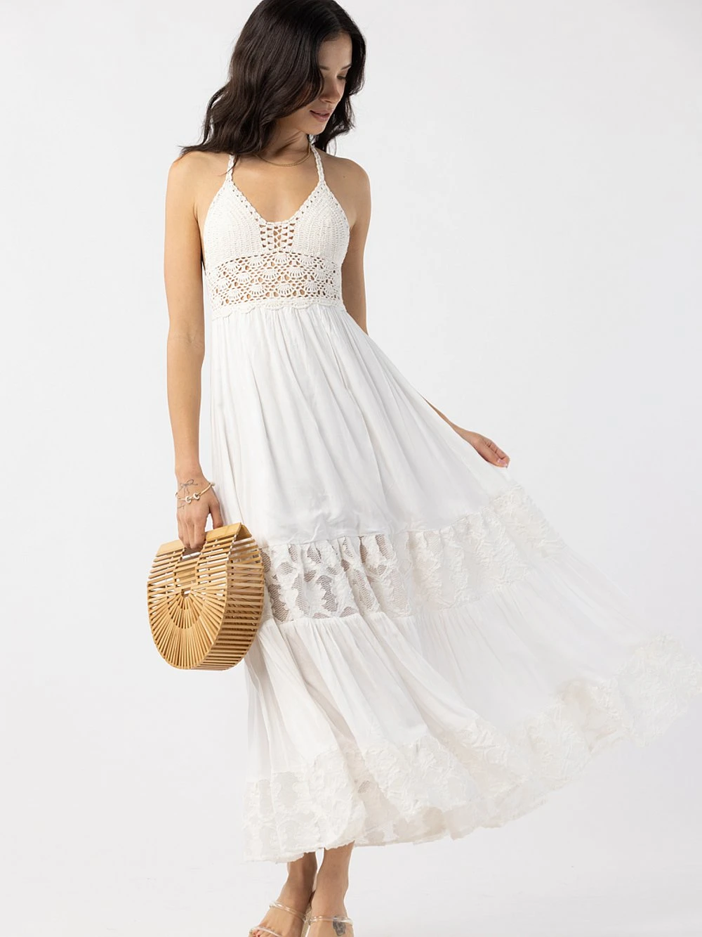 A crocheted bodice adds a hint of bohemian cool to this breezy maxi Dress that gets a whimsical finish thanks to its flowing silhouette and lacy details. Pair with boots for a festival-ready look or strappy sandals for an elevated feel.