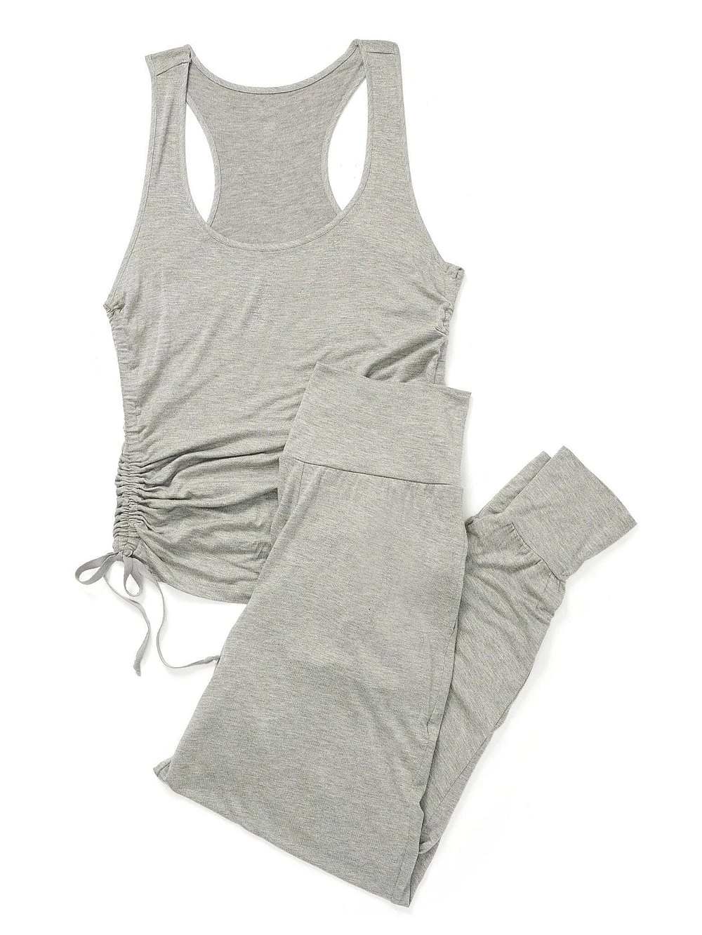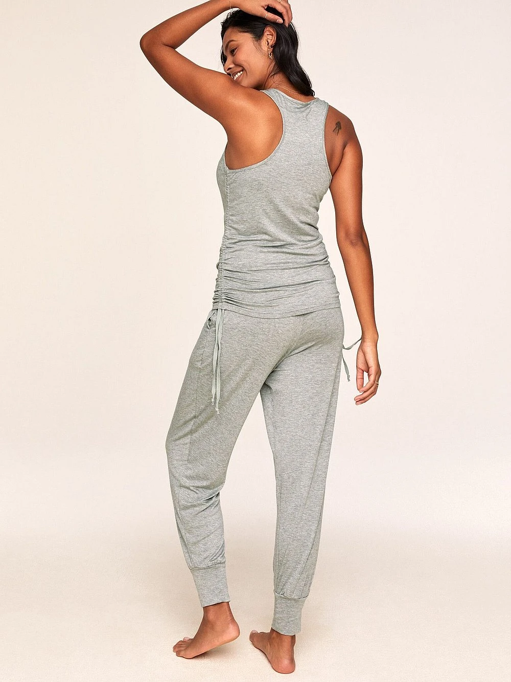Take it easy in this ultra-soft matching tank and jogger set, featuring ruched details at the sides. This one works beyond the bedroom—pair with sneakers for a cozy coffee run.