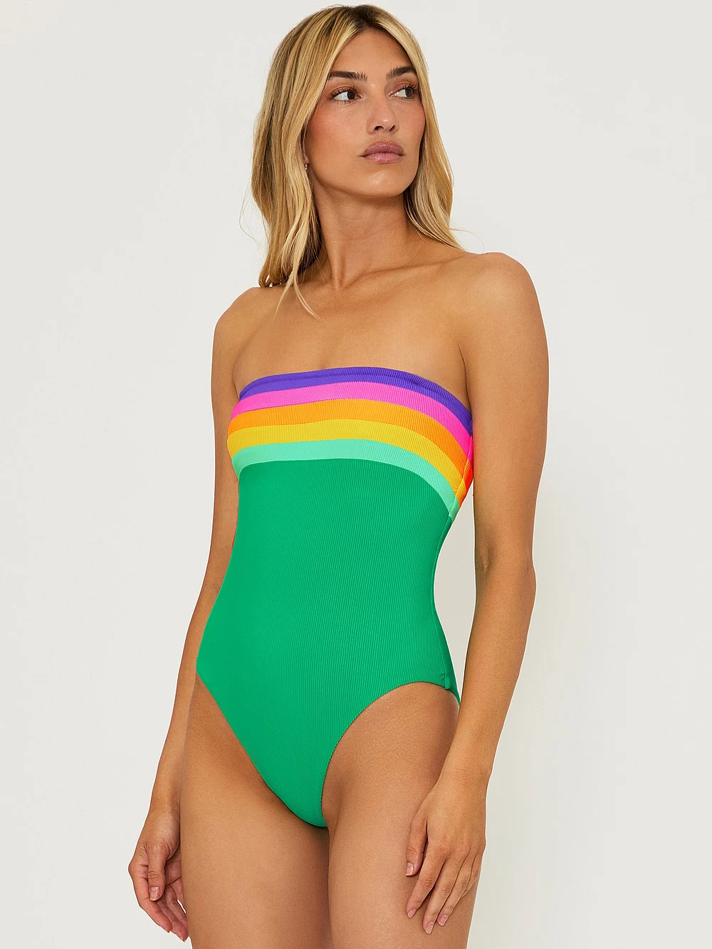 This sleek silhouette features a flattering, straight neckline and just the right amount of coverage (aka, it’s a must-wear for your next summer escape).