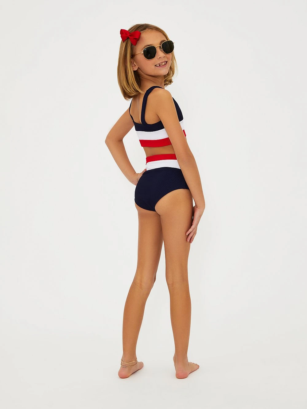 One for you, one for her: Match with your mini with this two-piece Swim set that features cool color blocking details to add a retro vibe.