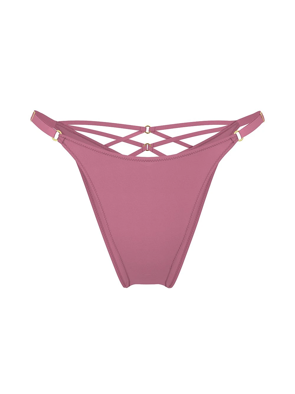 Our iconic rose lace takes center stage on this sexy Brazilian Panty, featuring adjustable side straps for a customizable fit.