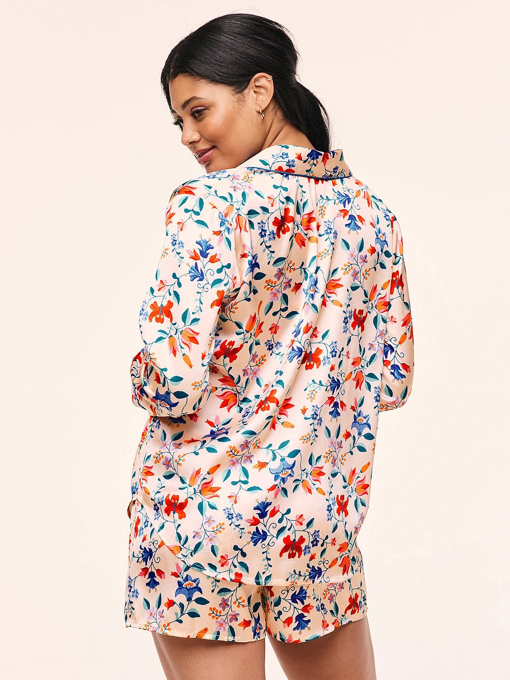 This silky satin sleepwear set is the perfect way to feel sexy and cozy at the same time. With a collared long sleeve button-down top and matching shorts — you’ll stay cozy whether you’re lounging around the house or getting ready for a night out, this sleepwear set is just what you need.