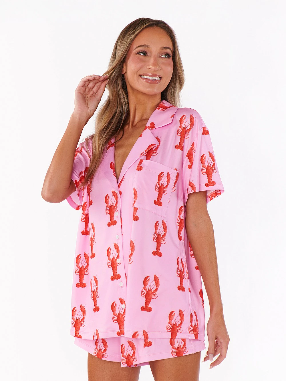Escape to the seaside (and sleep in) with this super soft and cozy two-piece set that boasts a bright lobster pattern and a comfy, relaxed fit.