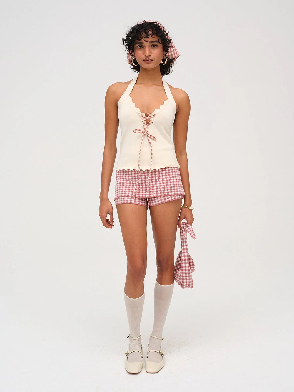 A polished Tank for the modern muse, this spring-ready style is crafted from a soft and cozy knitted fabric and finished with chic, scalloped details. Love to coordinate your look? Make it a match and pair with the Sisi Scallop Knit Cardigan and Gingham Skort.