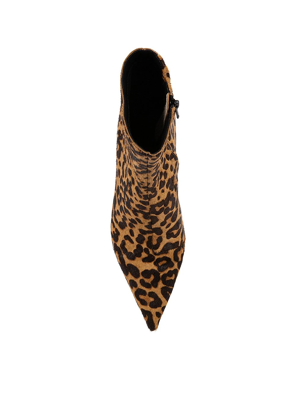 The ALSTON is a pointy toe leather bootie with tapered heel balance fashioned with a side zipper for easy entry.