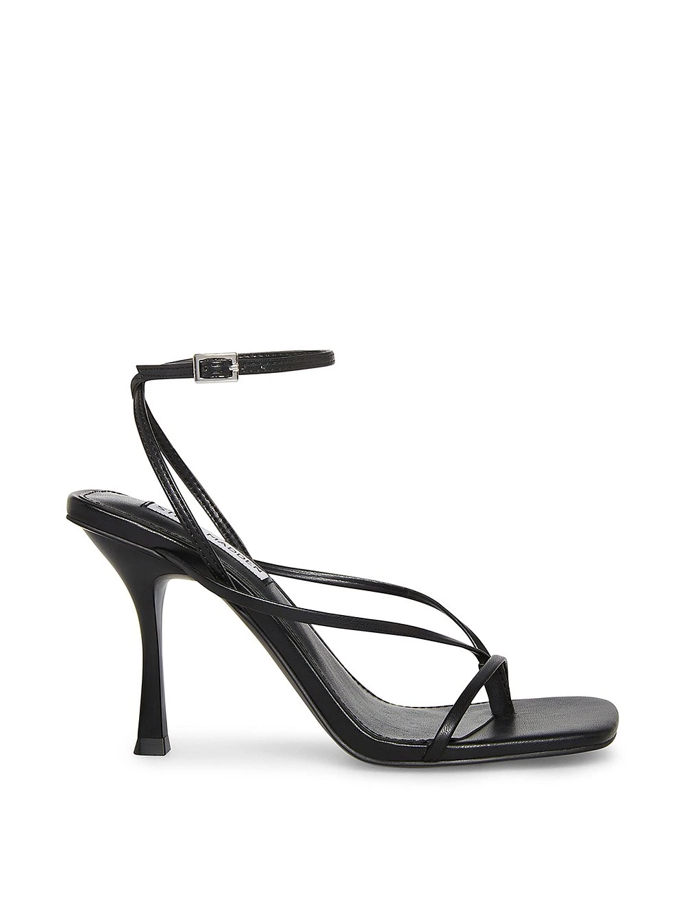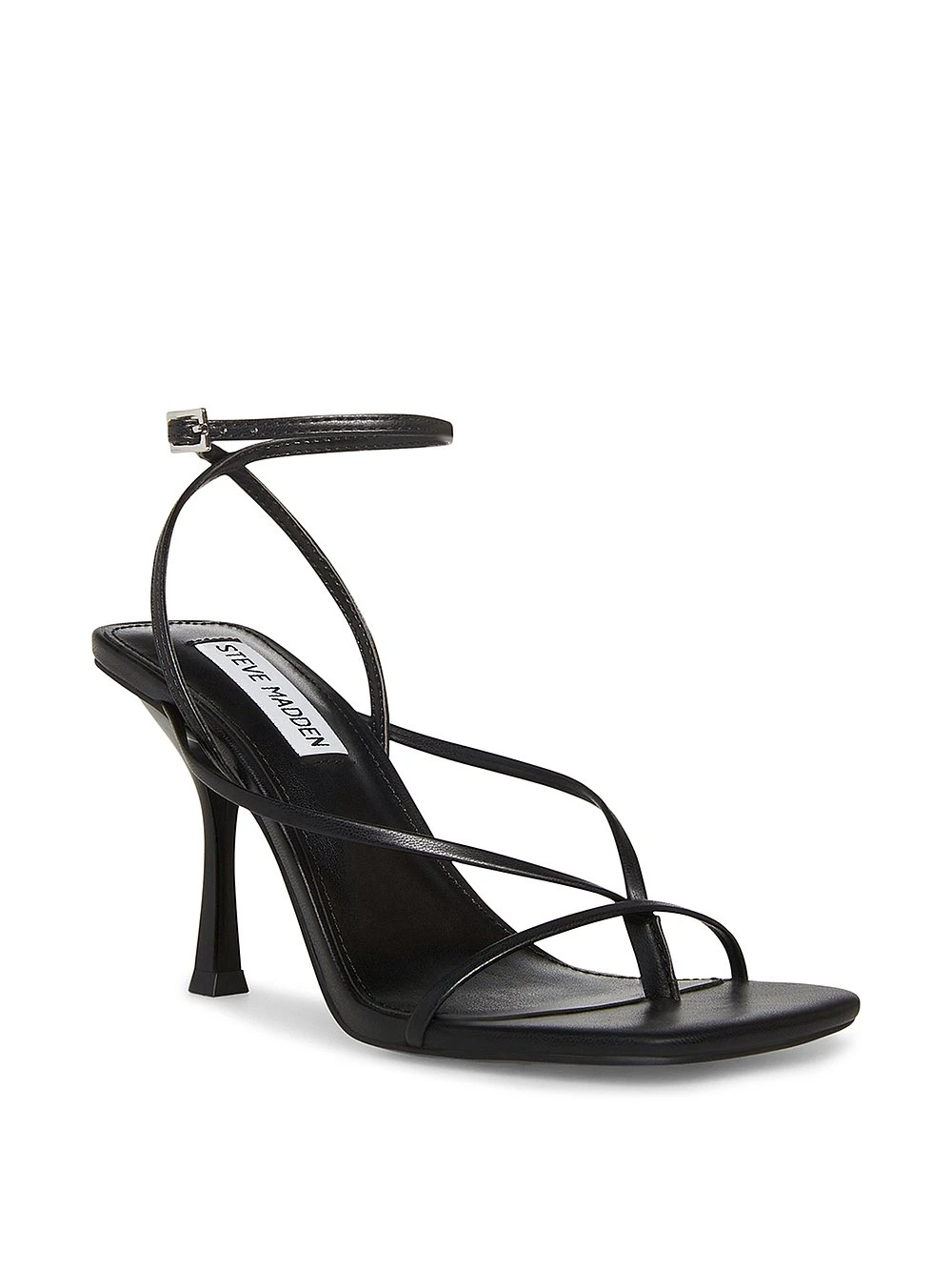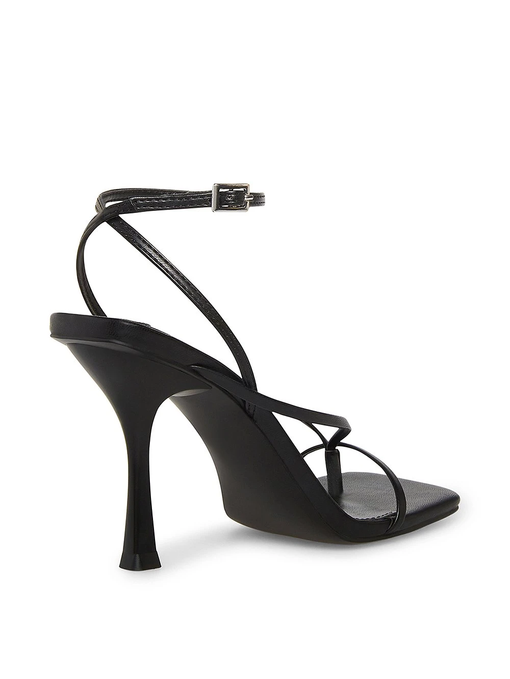A simple strappy silhouette and stiletto heel work in tandem to complement all your work to play looks.