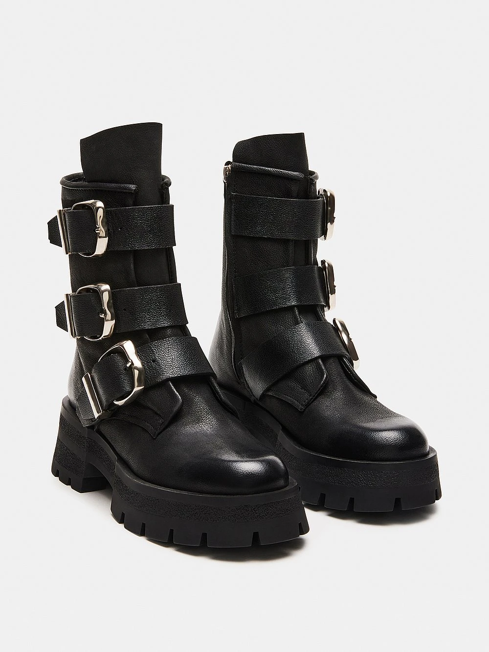 Bring a bit of moto edge to your everyday style in this lug-sole bootie accented with a trio of bold buckle straps.