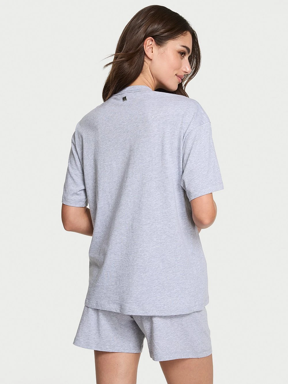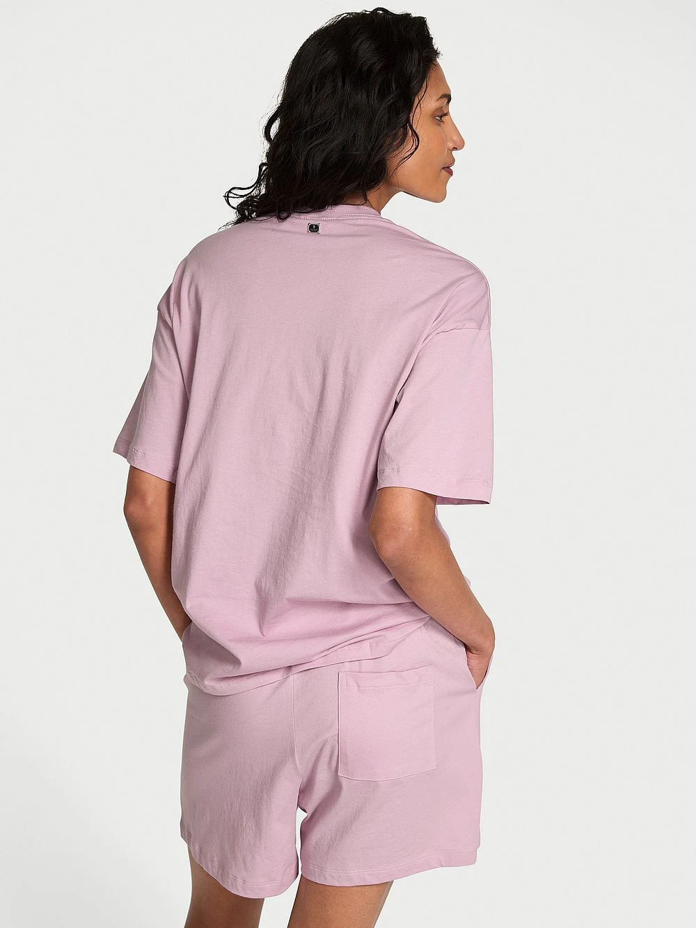 Discover an all-cotton essential Set you’ll wonder how you lived without. On top, a soft, short-sleeved Tee, while the matching drawstring Shorts feature a foldover waistband with our signature logo elastic.