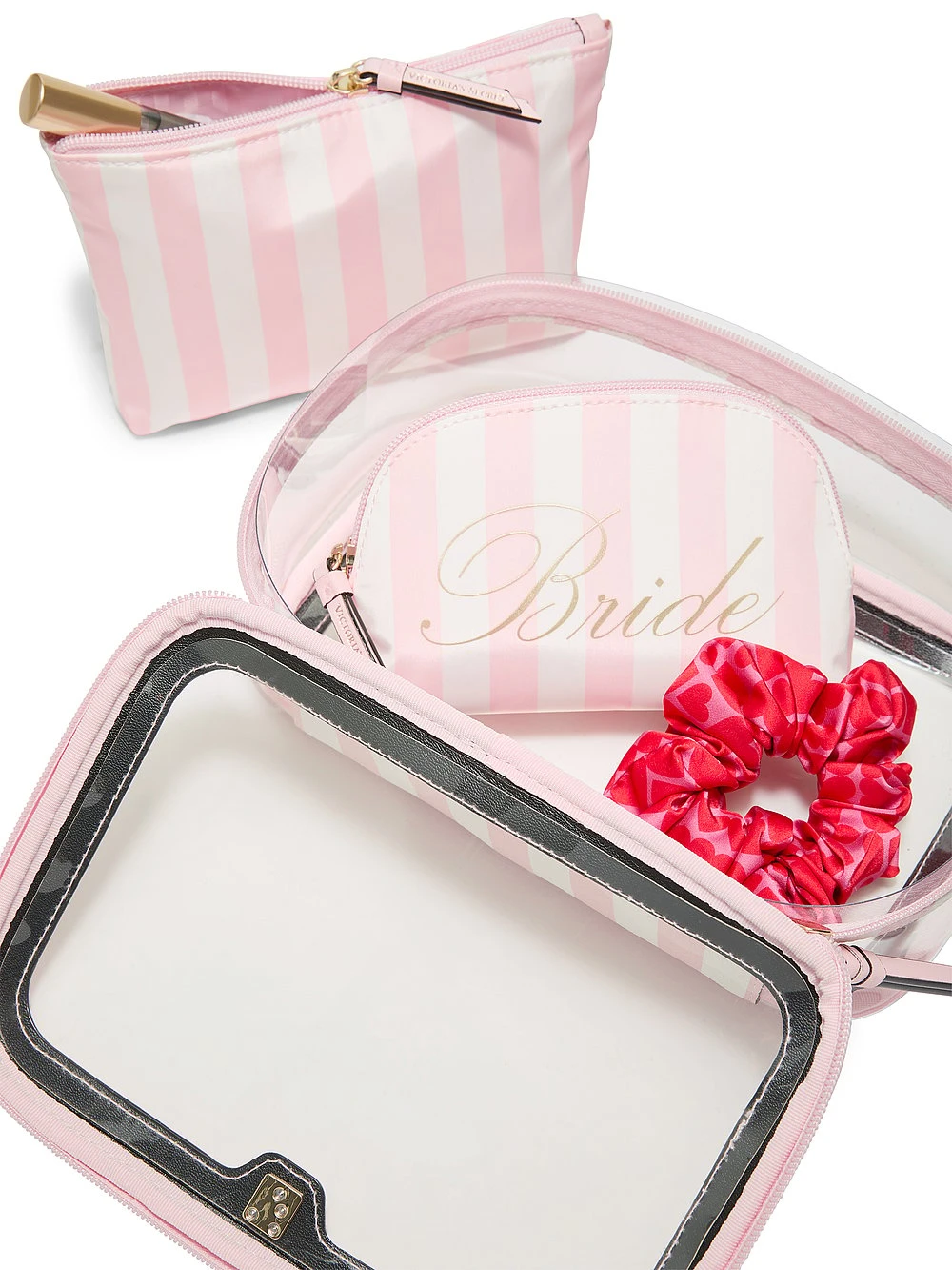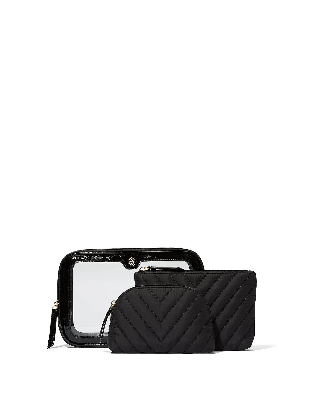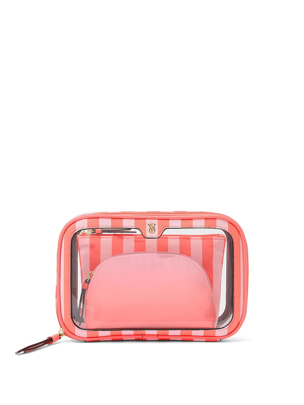 Triple the glam. This charming stripe trio fits everything you could ever need. Together or separate, the clear exterior to helps you quickly find what you’re looking for.