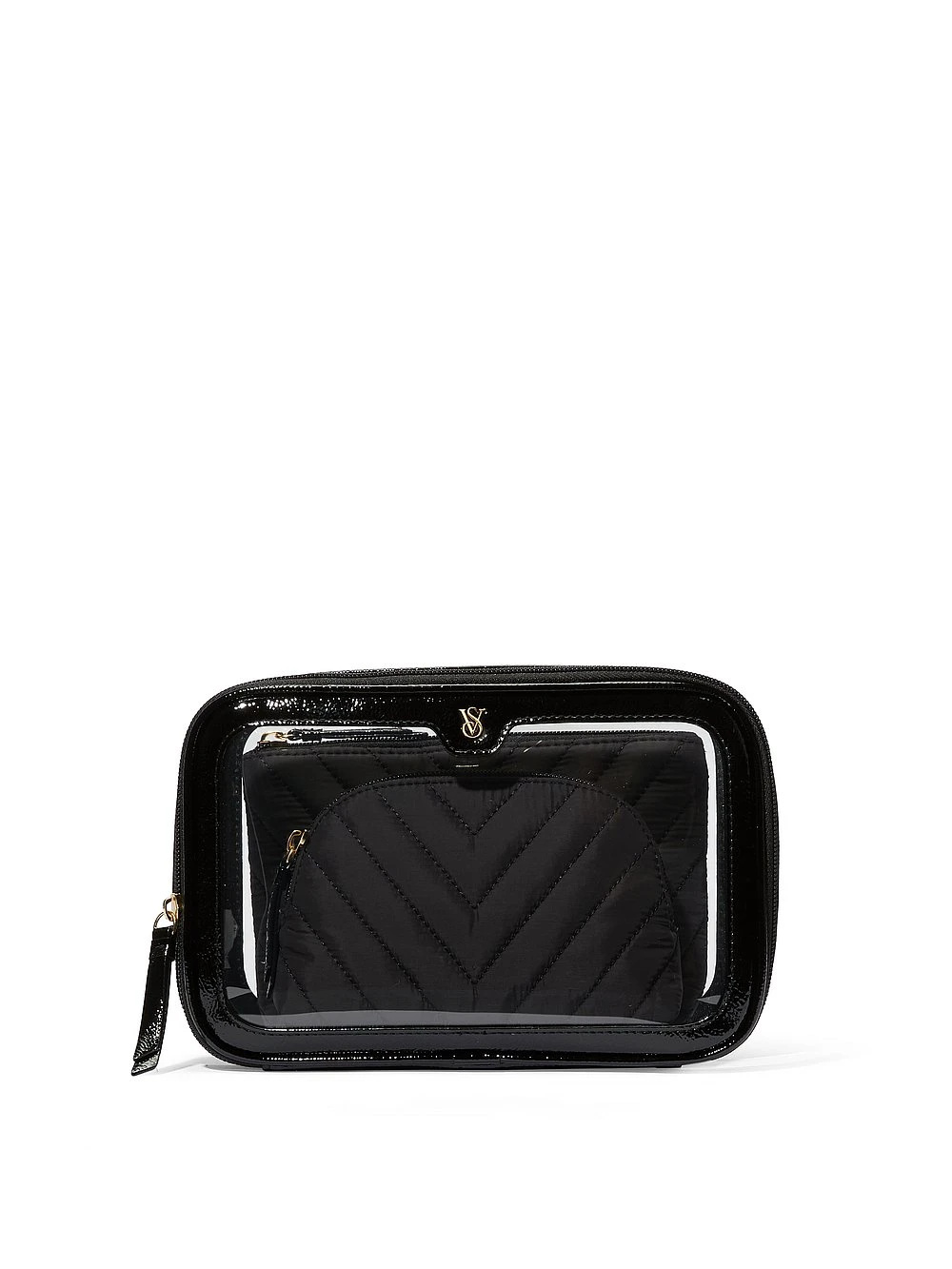Here comes the glam. This iconic stripe trio fits everything you could ever need and the clear exterior helps you quickly find what you’re looking for. Features a beautiful bridal embroidery to celebrate your special day.