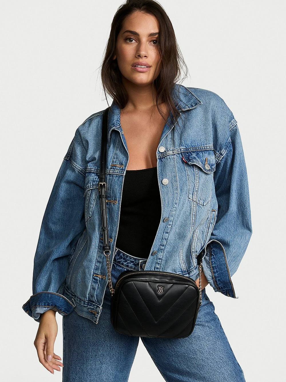 Our signature V-quilt pattern pairs perfectly with golden hardware on this softly structured crossbody. Finished with a sleek top zip for easy access to phone and essentials.