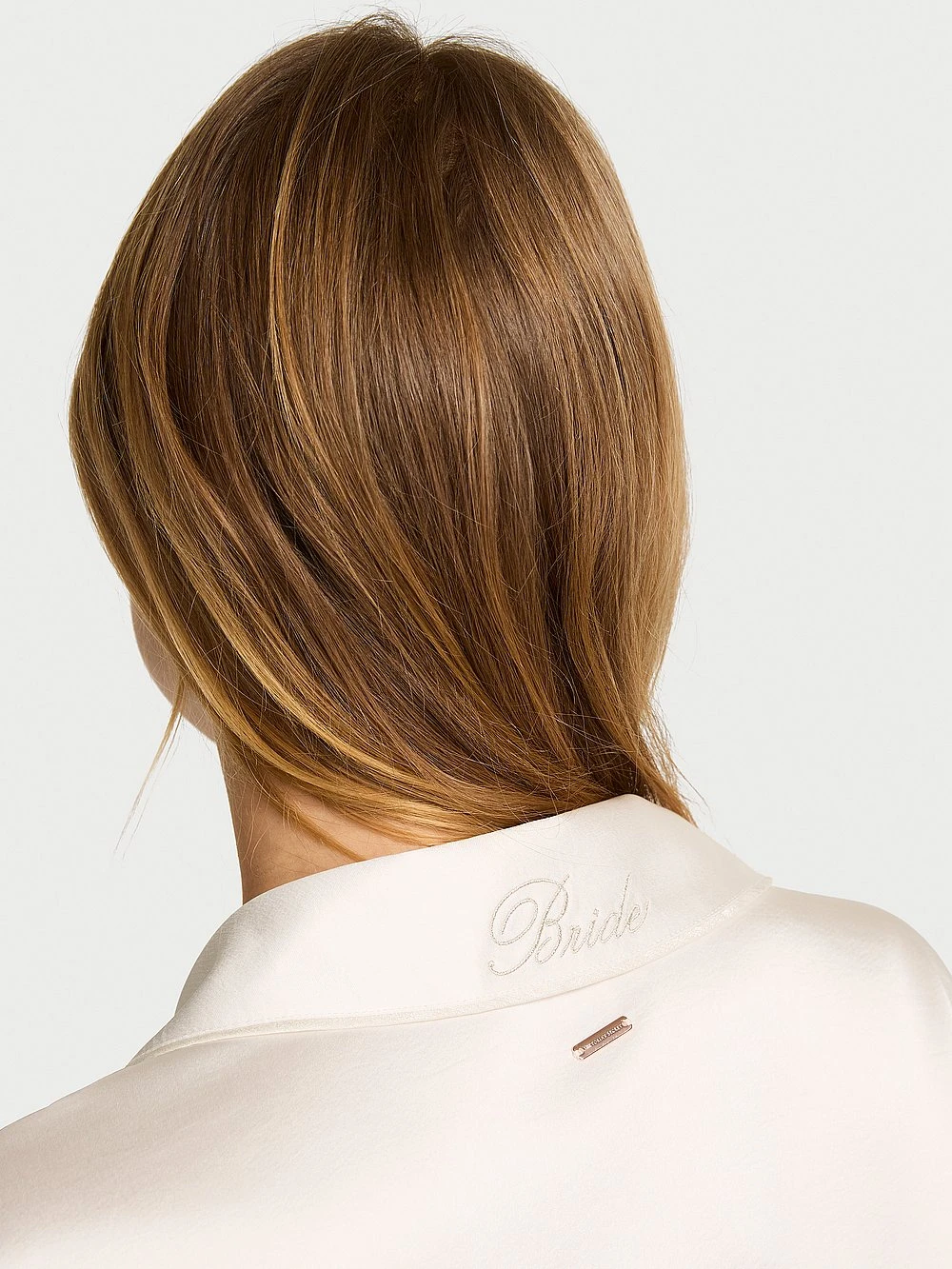 Pajama dressing just got a whole lot more luxurious, thanks to our newest, substantial satin fabric with a glamorous sheen. On top, sophisticated double-breasted styling is finished with patch pockets.