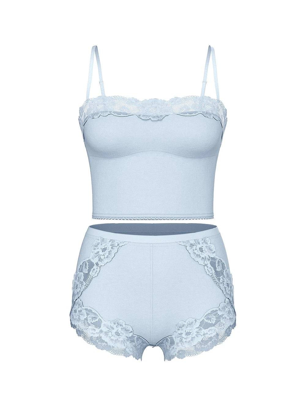 Delicate lace accents buttery modal fabric on this body-hugging set, complete with a cropped cami and matching high-waisted shorts.