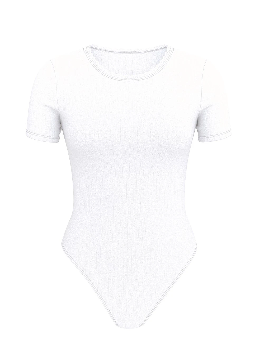 This curve-hugging Bodysuit is crafted in the newest addition to our beloved modal-blend fabrics. As soft as you expect, it now features an airy pointelle logo pattern and just a hint of feminine lace.