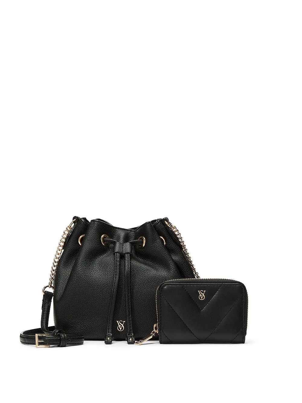 This mini must-have features a classic wrap-around zip and just enough room for your go-to cards and cash. In an allover V-quilt pattern complete with VS logo hardware.