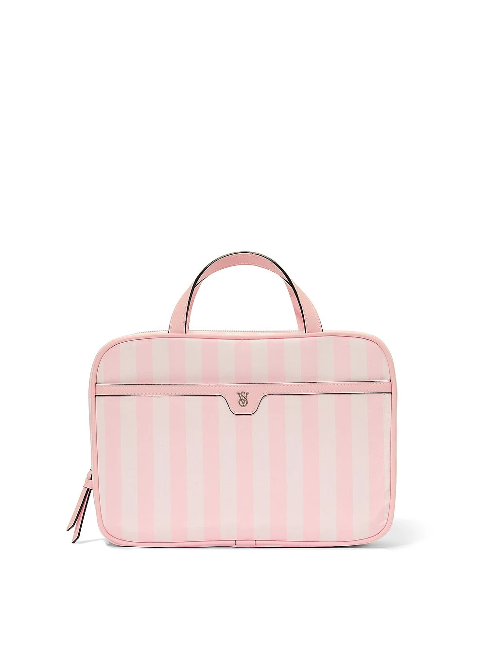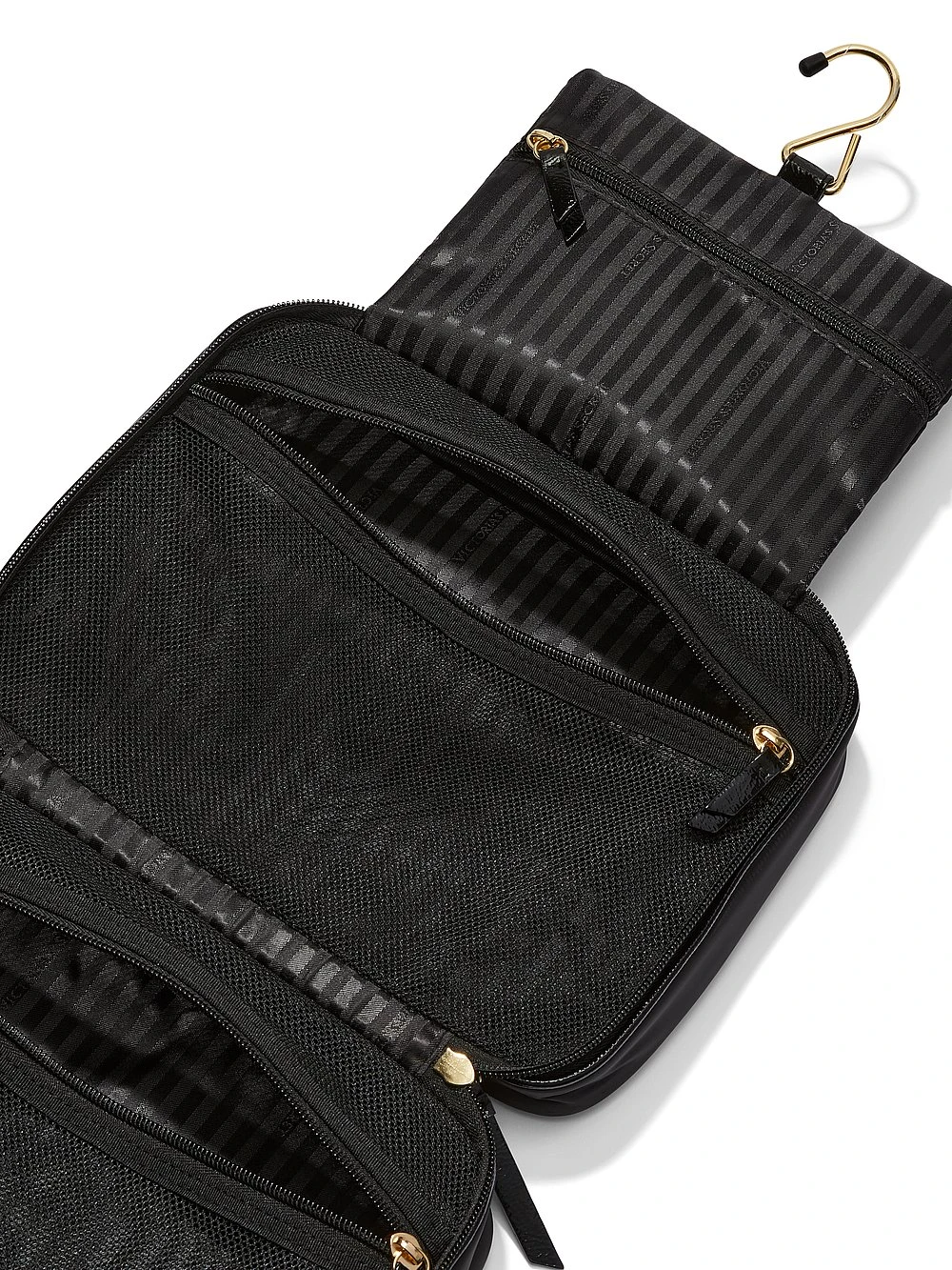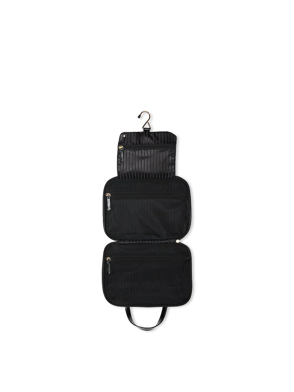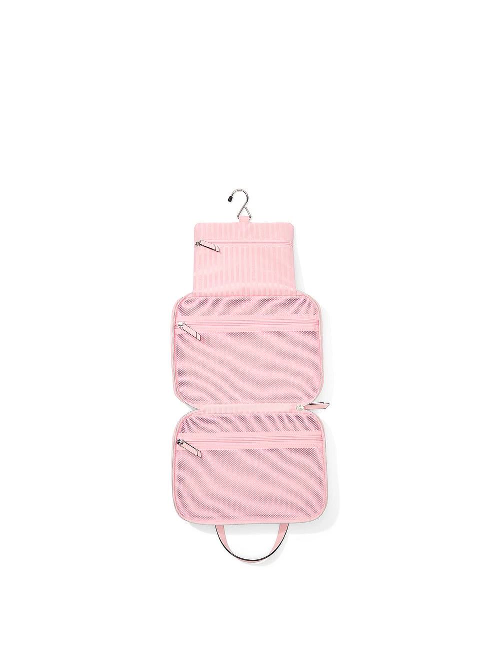 Set up shop. This hanging Travel Toiletry Bag holds everything you could ever need. Keep all your products, from makeup to hair care, organized with a hook to hang as you get ready. Features a charming stripe design for added style.